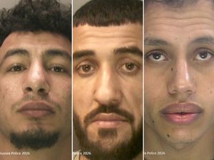 Three asylum seekers have been found guilty over the rape of a woman on Brighton beach in a "cynical, predatory and callous" attack.