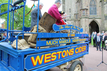 The Webb Ellis Cup visited Hereford Cathedral as part of the Rugby World Cup.
