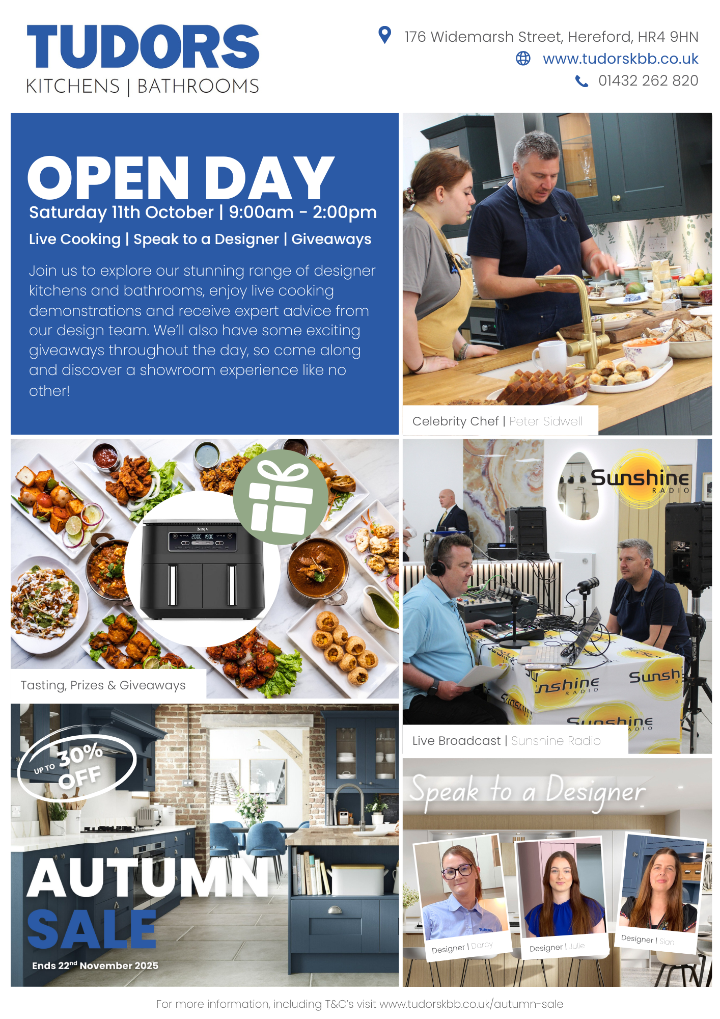 Join Tudors for their open day, to explore their stunning range of designer kitchens and bathrooms.